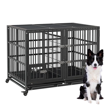 Garvee Passeggino per Cani Grandi e Medi, Telaio in Alluminio, Doppio Ingresso, Freno a Pedale, 3.6x2.3x3.5Ft, Nero, Ideale per Passeggiate e Viaggi