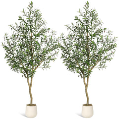 Garvee Alberi di Ulivo Artificiali Indoor 7 ft - Rami Regolabili - Tronco in Legno Naturale - Vasi Bianchi Resistenti - Decorazione Casa Ufficio Verde