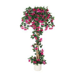 Garvee Albero Artificiale Bougainvillea 5FT Resistente UV Fiori Rosa Vaso Bianco Decorazione Interni Esterni Giardino Ufficio