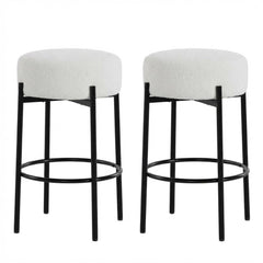 Garvee Set 2 Sgabelli Bar Tondi 24" Moderni Senza Schienale Sherpa Imbottiti Gambe Metallo Cucina e Bar