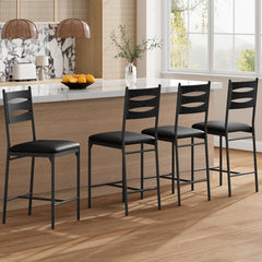 Set di 4 sgabelli da bar in legno con design elegante e moderno, perfetti per cucine e isole. Comfort ergonomico con imbottitura in ecopelle, schienale e poggiapiedi per una seduta stabile e piacevole.