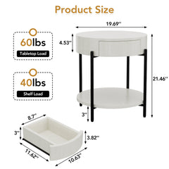 Tavolino rotondo in legno Garvee con cassetto, struttura in metallo, stile vintage per soggiorno e camera da letto, 50 cm, marrone