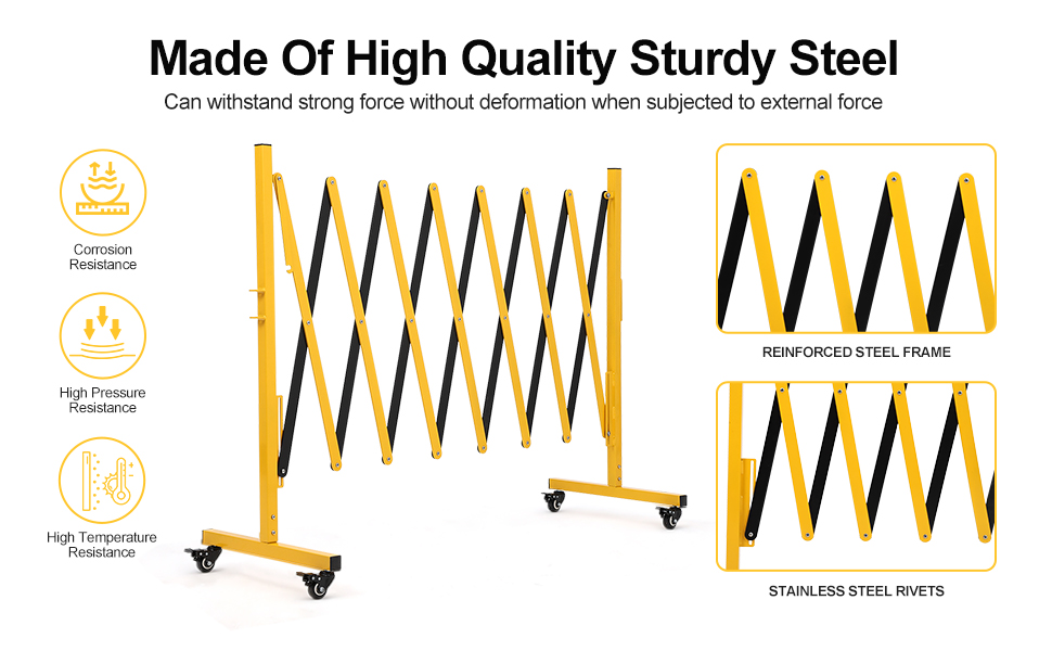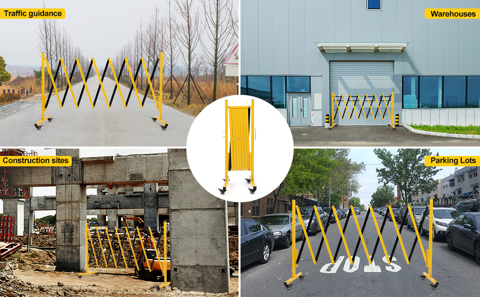 Garvee Barricata Metallica Estensibile 11 ft, Cancello Pieghevole di Sicurezza in Alluminio Resistente con Ruote e Blocco, Controllo Traffico e Cantiere, Argento