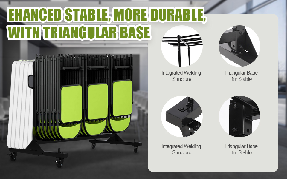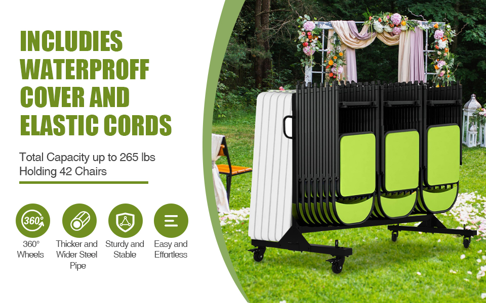 Garvee Carrello Porta Sedie Pieghevoli con Copertura, Capacità 400 LBS, Ruote PVC Bloccabili, Metallo Robusto, Altezza Regolabile, Multiuso per Eventi e Magazzino