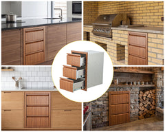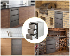 Scopri il cassetto per griglia esterna in acciaio inossidabile: 3 cassetti spaziosi, porta laterale, scorrimento fluido e resistenza estrema. Perfetto per organizzare utensili BBQ in cucina interna o esterna.