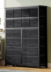 Garvee Cassettiera Alta con 16 Cassetti e Appendiabiti, Tessuto Resistente, Struttura in Acciaio, Camera da Letto, Versione Sinistra/Destra, Grigia