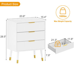 Garvee Cassettiera Alta 3 Cassetti con Maniglie Oro per Camera e Ingresso, Bianca, MDF Resistente, Design Minimalista