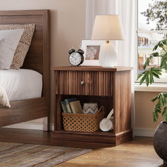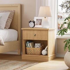 Garvee Comodino con Design Fluted e Cassetti, Ripiano Aperto, Camera da Letto, Robusto, Facile da Montare