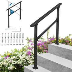 Garvee Corrimano Esterno per Scale 2 Gradini Regolabile 0°-45° Alluminio e Ferro Nero Kit Completo per Scale Esterne e Verande