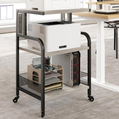 Scopri il supporto per stampante mobile con stazione di ricarica: 2 prese AC, 2 USB, struttura metallica robusta da 68 kg, ruote con freno e ripiano regolabile. Ideale per home office!