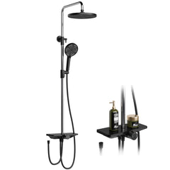 Immergiti in un'esperienza doccia rivitalizzante con la doccetta pioggia XL da 25cm, 3 getti multifunzione, mensola integrata e montaggio senza fori. Tubi in acciaio antiruggine e colonna regolabile per un upgrade elegante e pratico del tuo bagno. Scopri il benessere quotidiano!