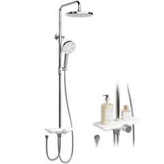 GARVEE Doccia a pioggia senza rubinetto con mensola, sistema doccia regolabile in acciaio inox per doccia, 25 cm rotondo cromato