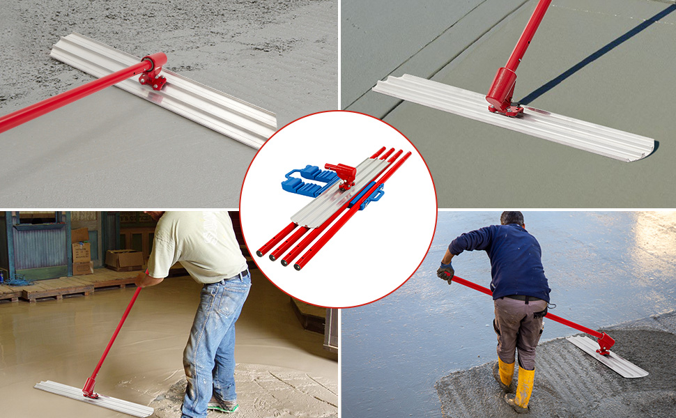 Garvee Frattone in Lega di Alluminio e Magnesio 48x8 Pollici, Bordo Rotondo, Supporto Regolabile, Manici Resistenti per Finitura Calcestruzzo, Uso Edile e Fai-da-Te, Rosso