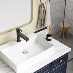 Lavabo da appoggio in ceramica Garvee, rettangolare, troppo pieno, bianco lucido, 21,65x15,75x7,87 pollici, bagno moderno