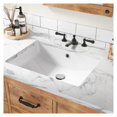 Lavandino rettangolare sottotop con troppopieno integrato per un'eleganza minimalista che eleva il tuo bagno con stile contemporaneo e glamour.