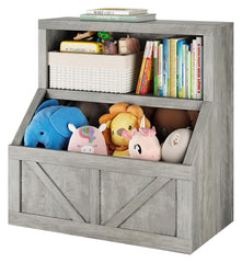 Libreria per bambini e contenitore per giocattoli Garvee, 2 ripiani, in legno, per sala giochi e cameretta dei bambini, 31,42x16,56x32 pollici, legno naturale
