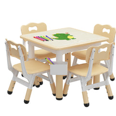 Set tavolo e 4 sedie per bambini Garvee, altezza regolabile, piano del tavolo con graffiti, truciolato, per casa e asilo, età 2-10 anni