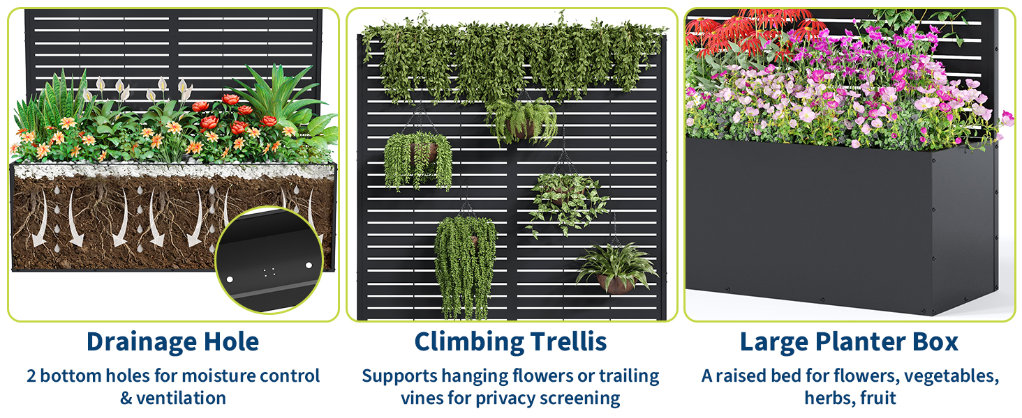 Garvee Letto Da Giardino Rialzato In Metallo Con Graticcio, 71"x47"x16", Nero, Per Patio E Balcone, Resistente Alla Ruggine