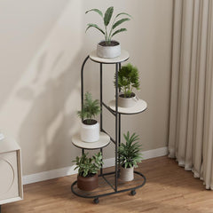 Portavasi in metallo Garvee con ruote, multilivello, in ferro battuto, per soggiorno, balcone, giardino, salvaspazio, nero