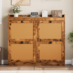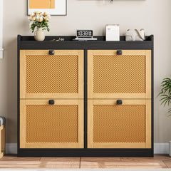 Garvee Mobile Porta Scarpe in Rattan con 4 Cassetti Ribaltabili, Organizer in Legno, Capienza 26-32 Paia, Design Silenzioso, Antiribaltamento, per Ingresso e Corridoio