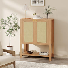 Unendo dettagli della venatura del legno con eleganti ante in rattan, l'armadietto per scarpe aggiunge calore naturale e un tocco vintage alla tua casa. Le uniche maniglie rotonde in metallo offrono un tocco raffinato.
