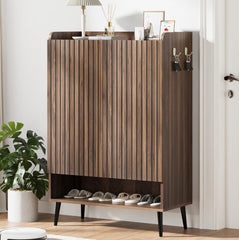 Armadio porta scarpe ad alta capacità con 6 ripiani per 24-30 paia, design moderno e ganci integrati. Sicuro con angoli arrotondati, perfetto per ingresso o corridoio.