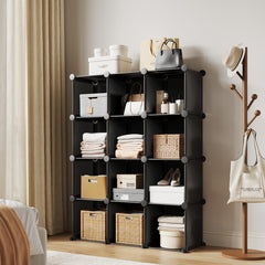 Organizer modulare con 12 cubi da 32 cm per personalizzare il tuo spazio con stile e ordine. Robusto, sicuro con kit anti-ribaltamento e assemblaggio facile senza attrezzi.