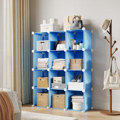 Garvee Organizer 12 Cubi Modulari Blu, Anti-Ribaltamento, Telaio Acciaio, Pannelli PP, Montaggio Senza Attrezzi, Camera, Armadio, Bambini