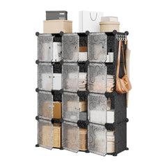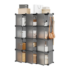Garvee Organizzatore Cubico 12 Cubi con Porte - Armadio Plastica Traslucida, Montaggio Rapido, Pannelli Resistenti, Modulabile, con Martello per Casa e Ufficio, Trasparente