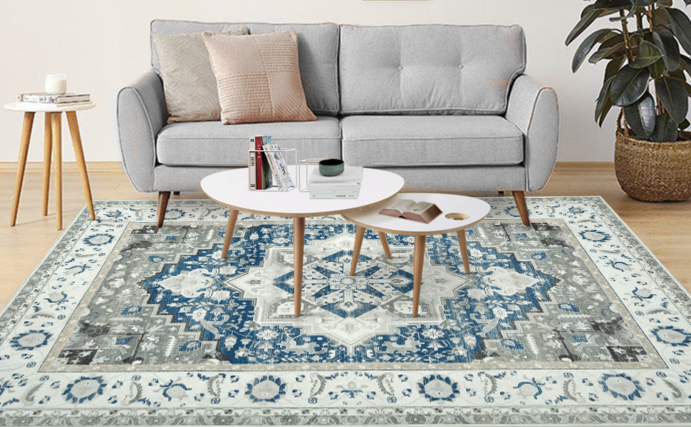 Garvee Orientteppich Vintage Läufer Mit Blumenmuster, Rutschfest & Waschbar Für Wohnzimmer Und Küche, 120x170 cm, Polyester Weich