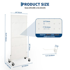 Garvee Espositore Pegboard Metallico 2'x5' Con Ruote, Struttura Robusta, Acciaio Verniciato, 10 Ganci, Negozi E Fiere