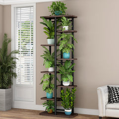 Supporto per piante in metallo multilivello Garvee con base in legno per uso interno ed esterno, balcone, giardino, nero, varie dimensioni