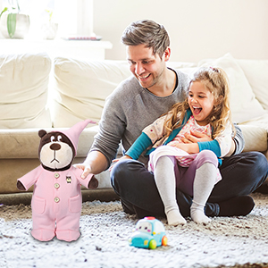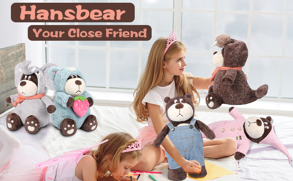 Hansbear cattura l'attenzione con la sua eccellente lavorazione e dettagli curati, incluso il pigiama rosa rimovibile per un gioco versatile e divertente.