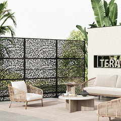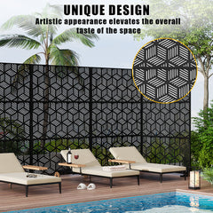 Garvee Schermo Privacy in Metallo 74"x47.2" con Supporto - Pannelli Decorativi Esterni - Design Chevron Nero - Acciaio Verniciato Antiruggine - Per Giardino e Balcone