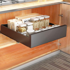 Organizzatore per armadi estensibile in acciaio al carbonio, robusto fino a 25 kg con scorrimento silenzioso. Ideale per cucine, bagni e altro, installazione facile senza foratura.