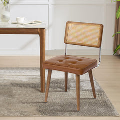 Scopri la sedia da pranzo lussuosa con seduta in pelle sintetica, schienale rattan traspirante e struttura in legno solida. Comfort ergonomico, design elegante e montaggio facile per la tua casa italiana.