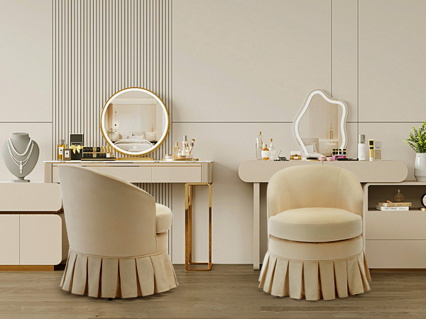 Garvee Sgabello Vanity con Schienale Alto e Braccioli, Tasche Laterali, Gambe in Legno, Comodo, Stile Mid-Century, Perfetto per Trucco e Bagno, 24.41x18.89x27.95 in, Pastello