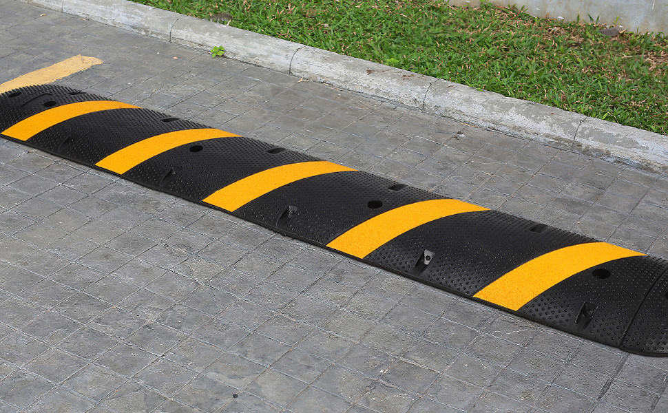 Garvee Speed Bump 6 ft Modulable 25000 LBS Carico Protezione Cavi Gomma Antiscivolo Alta Visibilità Garage Parcheggi Nero Giallo