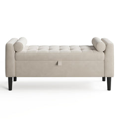 Panca contenitore Garvee da 46,5" con rivestimento in velluto, spazio di archiviazione e gambe in legno per corridoio e camera da letto, beige, imbottita, cerniere di sicurezza