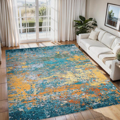 Garvee Teppich Gold-Blau Kurzflor Waschbar Rutschfest Weich Strapazierfähig Für Wohnzimmer 200x290cm Modernes Abstraktes Muster